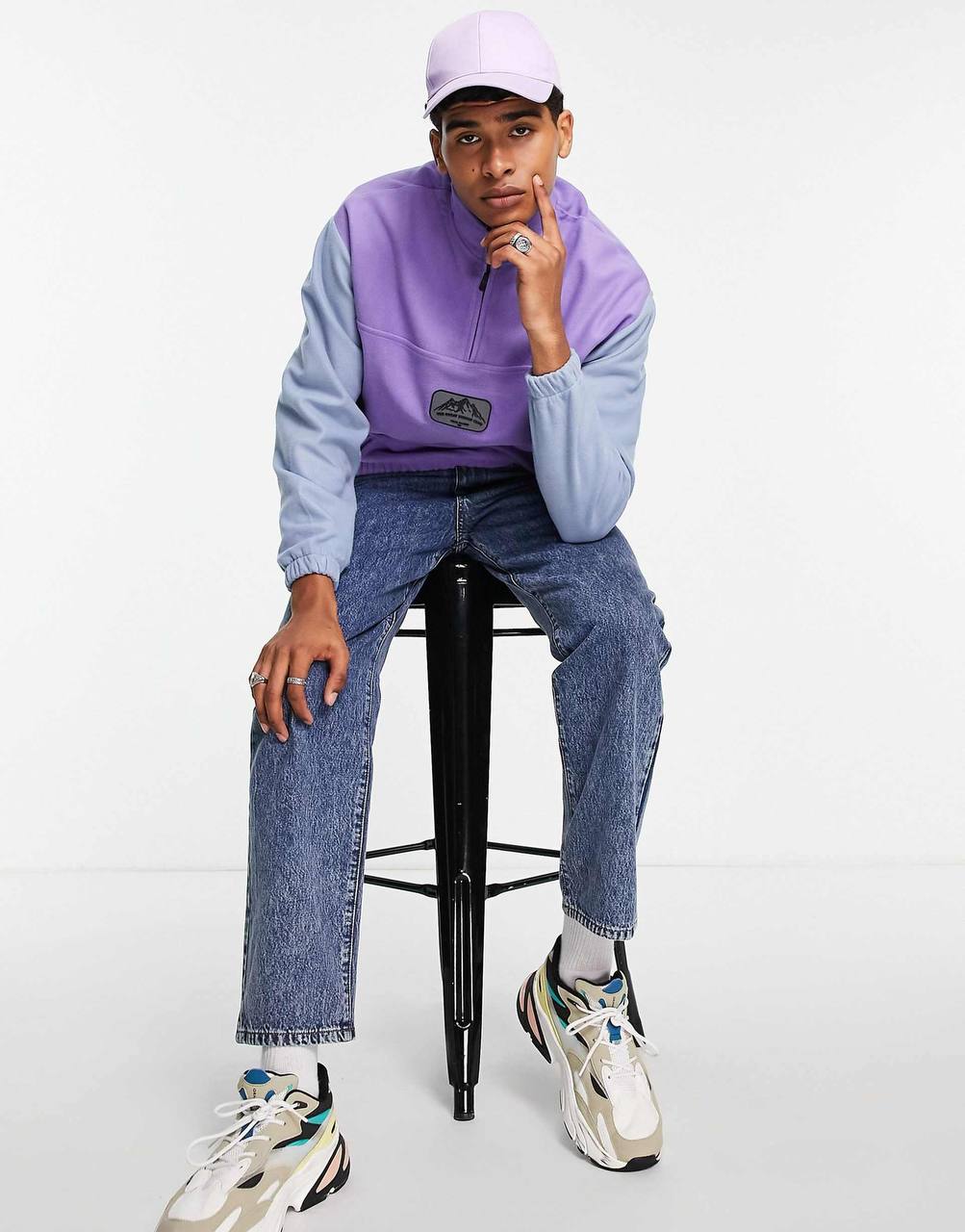 💜 رنگ بنفش روشن با آستین آبی کمرنگ 🩵