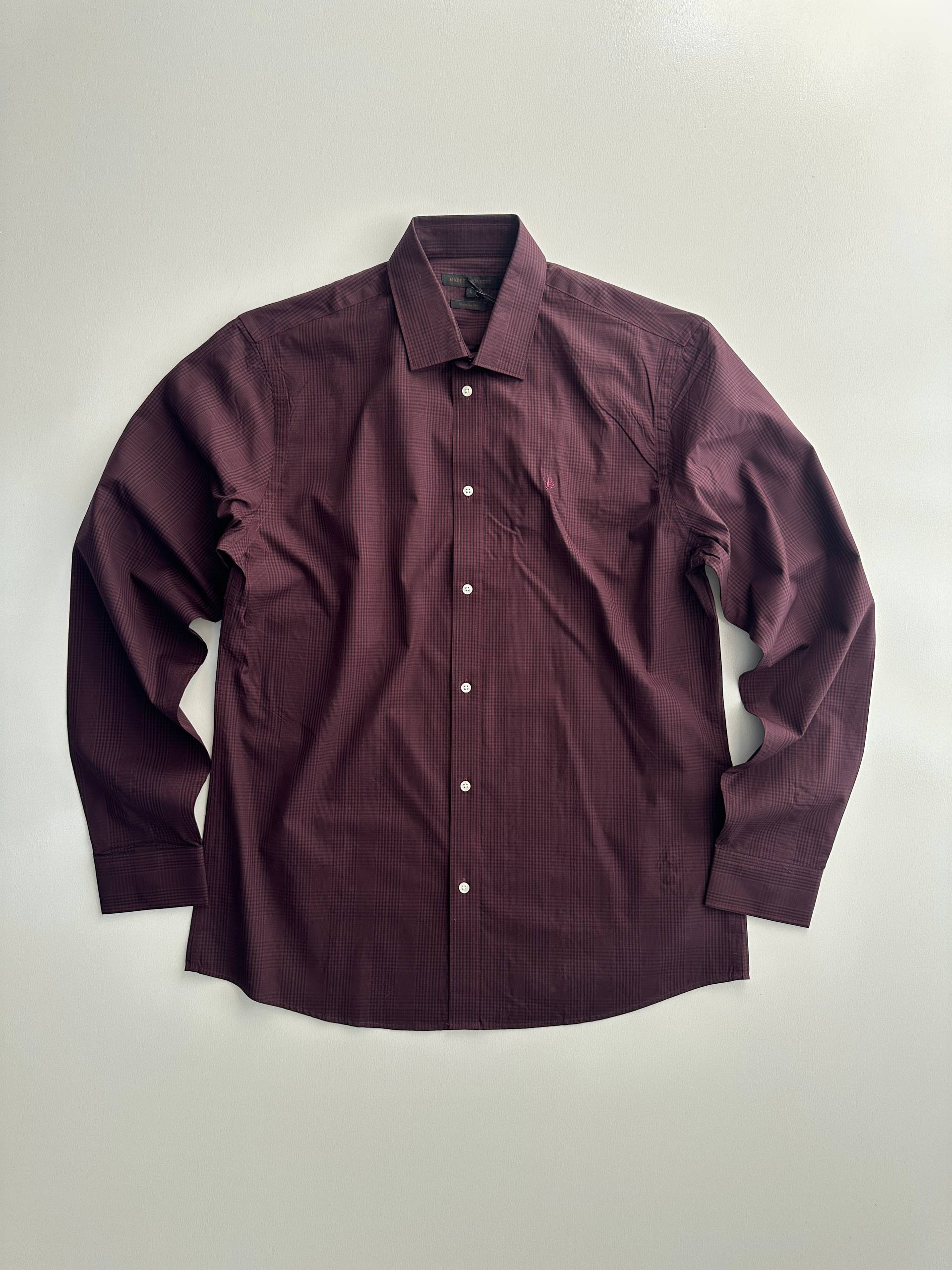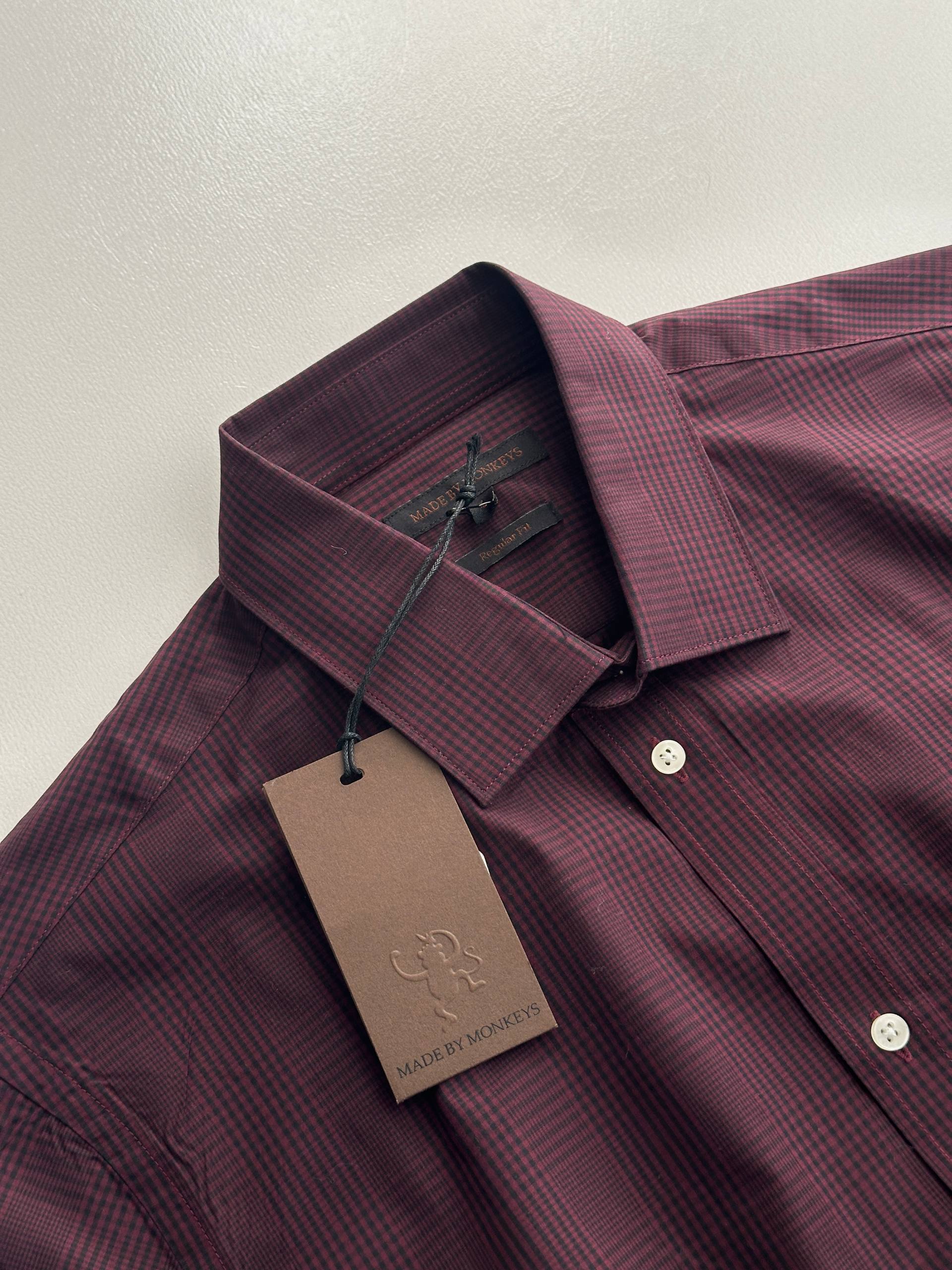 پیراهن مردانه برند MADE BY MONKEYS با رنگ زرشکی، انتخابی شیک و خاص برای استایل روزمره و نیمهرسمی است