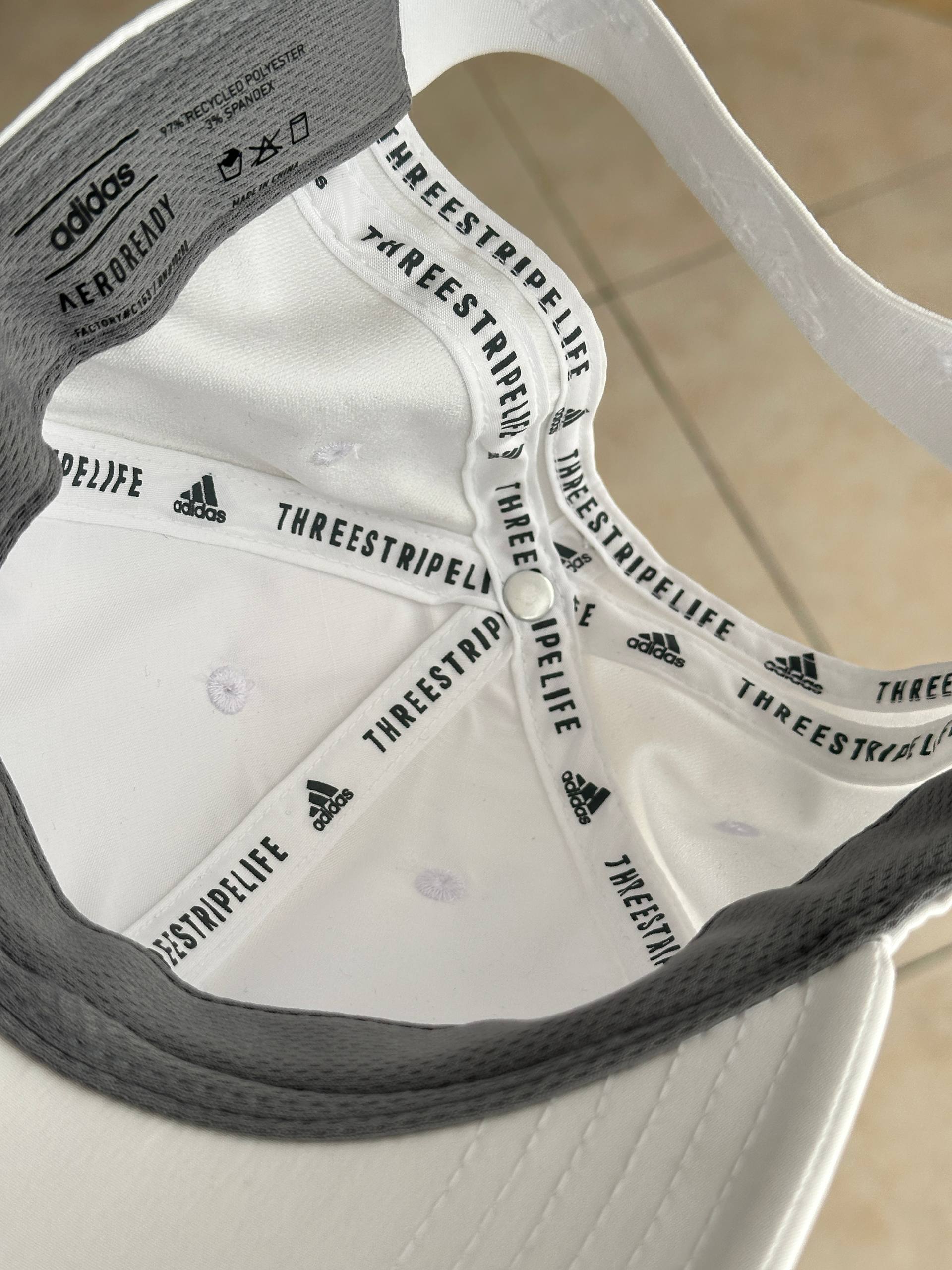 کلاه سفید آدیداس با طراحی ساده و لوگوی مشکی، انتخابی شیک و کاربردی برای استفاده روزمره و ورزشی است. ساخته‌شده از پلی‌استر بازیافتی با فناوری AEROREADY برای جذب رطوبت و حفظ خشکی. بند قابل تنظیم و فرم